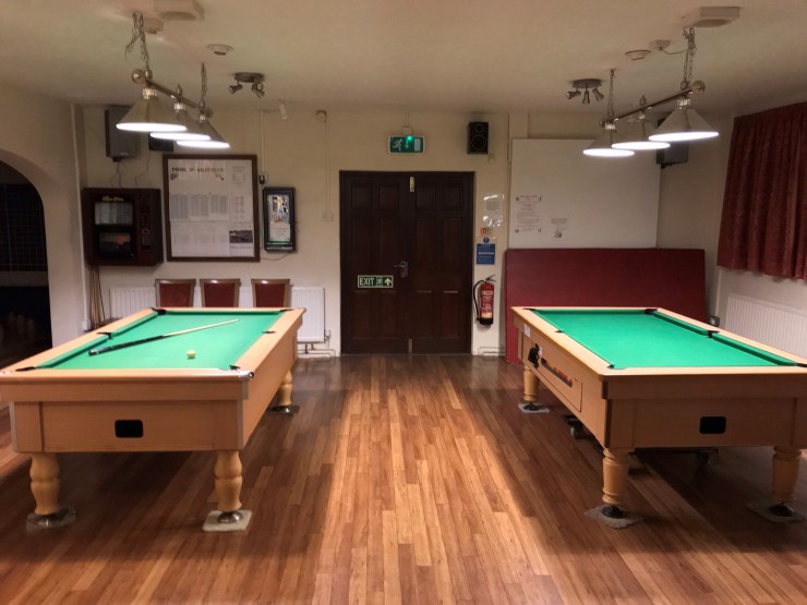 The pool tables are available every evening and cost only 40p per game.